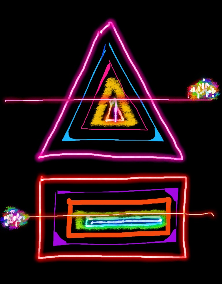 A free-form digital drawing practice using electric neon colour to trace the shifting contours of the void. Unlike generative algorithms, Neon Abstractionism is made by hand—each line a deliberate, trembling gesture of human presence against emptiness. Shapes refuse stability; colours pulse like thoughts on the brink of unmaking. It is art as confrontation, art as revelation.